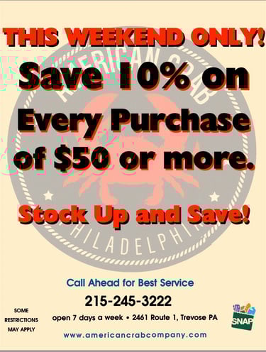 American Crab Company is a third generation, family owned business dating back over 45 years. The Green family owned and operated the widely popular Blue Point Crab in Philadelphia for many years. Since then, we have been specializing in selling wild caught, fresh seafood and are proud of our reputation as one of the finest seafood destinations in the Delaware Valley.